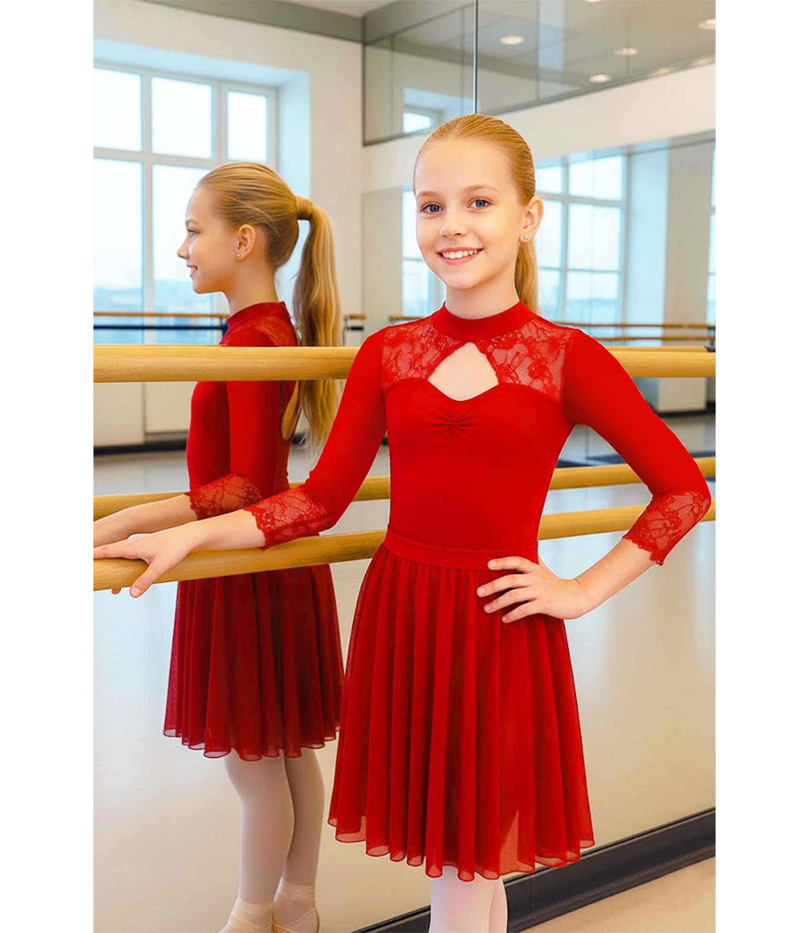 Body gimnastica & dans Rosu spandex Dantelat Anya D. 16121